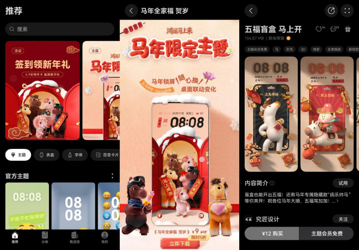 过年我方穿新衣,别忘了也给手机换上新年装!华为主题提供丰富的春节主题,图标、壁纸一键焕新,leyu飞速年味儿就有了。春节走亲访友之际,和家东说念主一又友共享你爱重的手机主题,只需要大开这套主题的细目页,给一又友解锁情状的手机碰一下,就能共享同款主题啦。本年还推出一个进阶新玩法,在主题细目页的右上角有个礼物秀丽,点击后不错购买挽救,还能聘请“惊喜礼盒”剪辑祝贺语,碰一碰就传递,让年味在指尖传递。