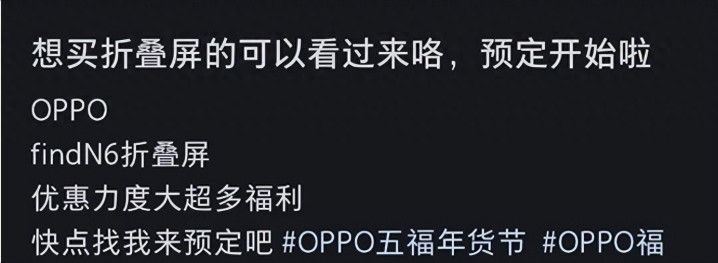 眼看春节越来越近,各家手机厂商早就停了节前新机发布,绝对在闷头谈论节后新品,而OPPO不走寻常路,成功提前开启预热,以至线下门店皆同步开启了Find N6的预定,这波操作确切太会吊东谈主胃口了!