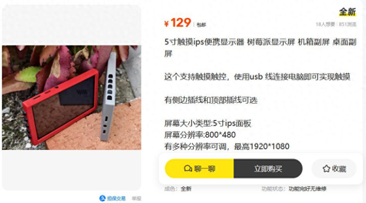 两包烟钱就能在二手鱼里捡个高清触摸屏?这事你敢信?但它还真就发生了。最近我就在二手鱼里发现,有个老哥正在卖DIY 5寸的IPS触摸便携表露器。带触摸,IPS面板,价钱129元!这价钱,搁两年前,也便是买个单色屏幕的钱,当今径直给你上高清了,何况还复旧触控。